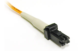 MT-RJ接头是方型精密塑胶接头,起步于NTT开发的MT连接器,带有与RJ-45型LAN电连接器相同的闩锁机构,通过安装于小型套管两侧的导向销对准光纤。MT-RJ接口的尺寸与标准电话插口的尺寸相当,可装入常规的RJ-45面板和配线架模块中。为便于与光收发信机相连,连接器端面光纤为双芯(间隔0.75mm)排列设计,是主要用于数据传输的下一代高密度光纤连接器。左图为MT-RJ接头,右图为MT-RJ连接器。